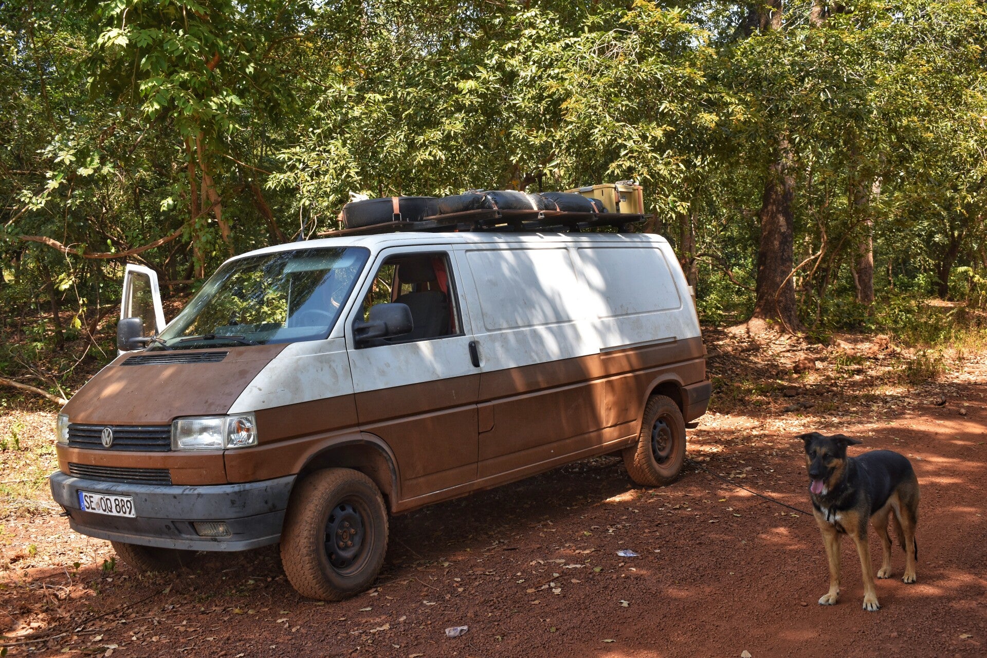 Also, die N24 ist nix für einen T4 mit 2WD. War aber weniger fehlende Traktion, die Rahmenkonstruktion ist einfach nicht für solche Belastungen gemacht. Ehrlich gesagt hatte ich richtig Schiss dass die Karre mitten im Urwald verreckt. Hatte genug Wasser und Essen dabei, also nicht wirklich gefährlich aber keinen Bock auf dieses Abenteuer. Nur ab und zu Dörfer, nix mit hübschen strohgedeckten Hütten und Lehmwänden. Äste, Zweige und Blätter als Dach. Keine Ahnung wie die der Regenzeit standhalten sollen. Und hier spricht sicher niemand französisch (wär noch mit dem translator gegangen). Die Blicke die ich erntete waren auch ziemlich, na ja erstaunt. Fotos von der Piste gibt’s nicht weil ich echt mit anderem beschäftigt war. Obwohl ich sagen muss, dass war bis jetzt die beeindruckendste Natur die ich bisher gesehen hab. Nicht nur der Wald, extreme Felsformationen mit Wasserfällen. Auf dem Rückweg wird’s dann viele Fotos aus Guinea geben. Die hab ich bei meinen kurzen Pausen gemacht
