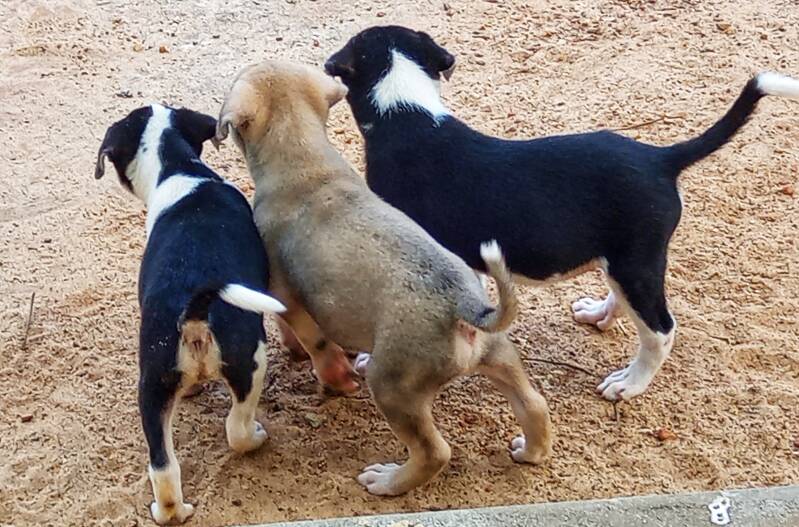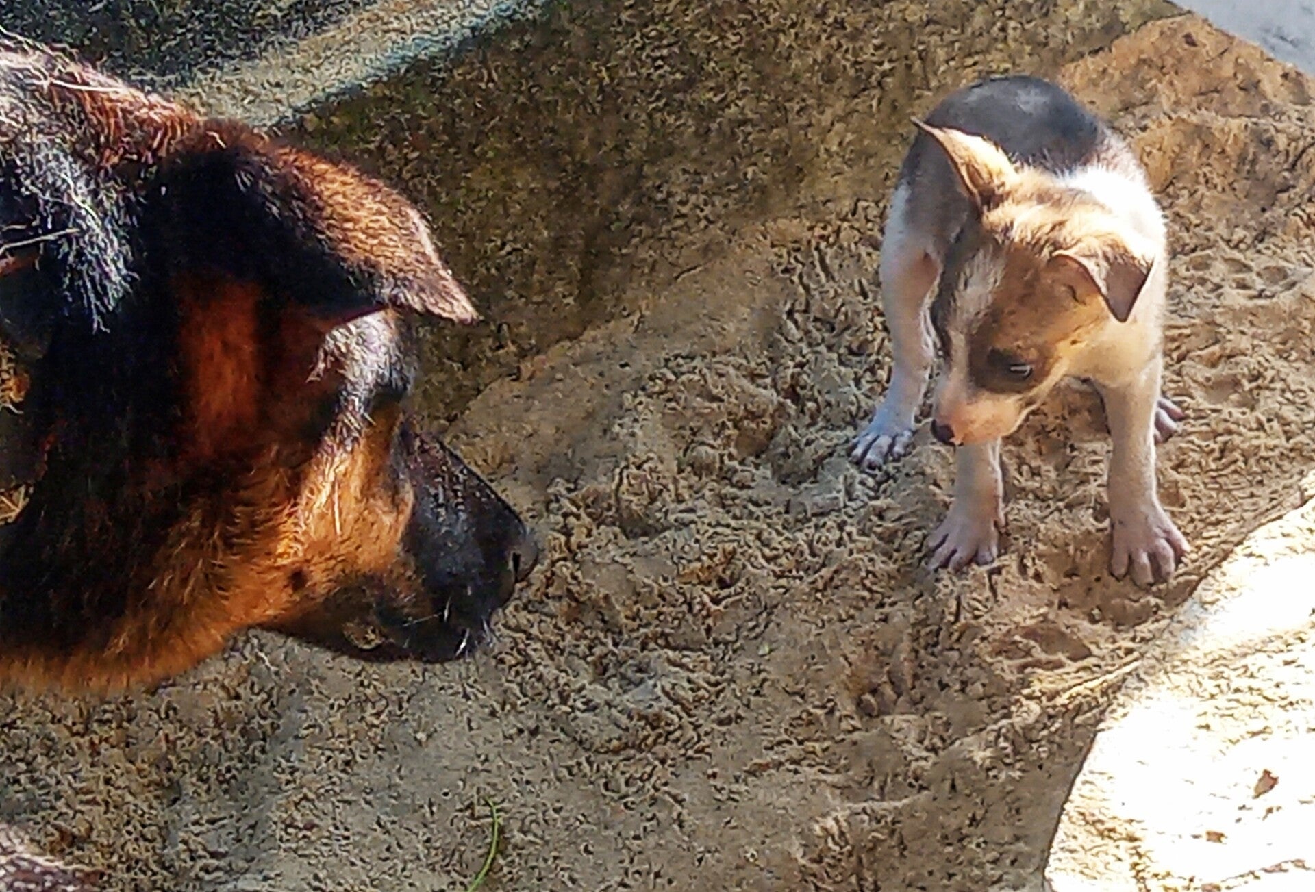 Die Kleinen sind immer mehr auf Entdeckungsreise und kehren Mamahund den Rücken zu.
