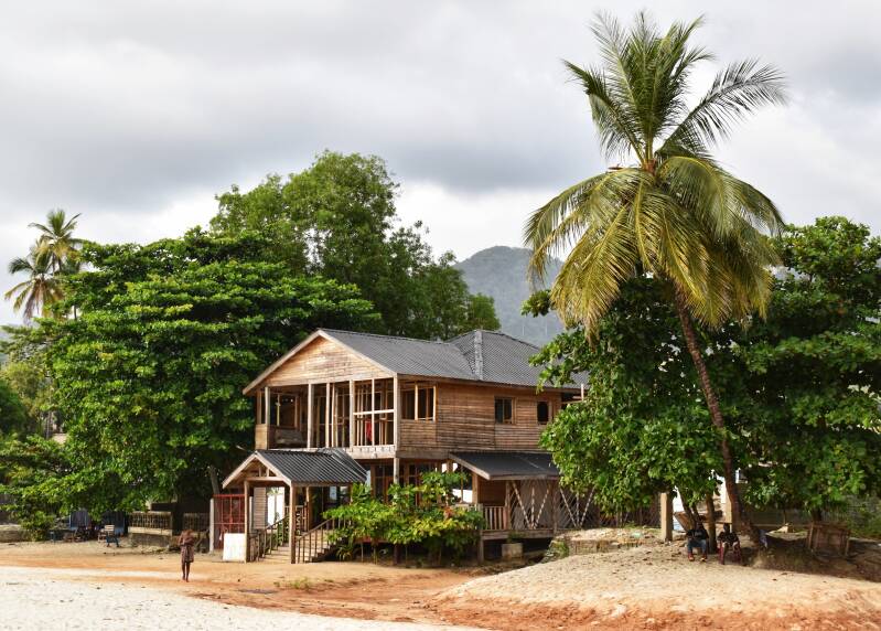 Etwas größer als Bureh Beach aber auch keine Menschen. Sah ähnlich aus wie Bureh, nur der Sand war noch feiner und es gab ein hübsches Strandhaus. War allerdings unfertig und sah auch nicht aus als ob's weitergehen würde, eher wieder am verfallen.