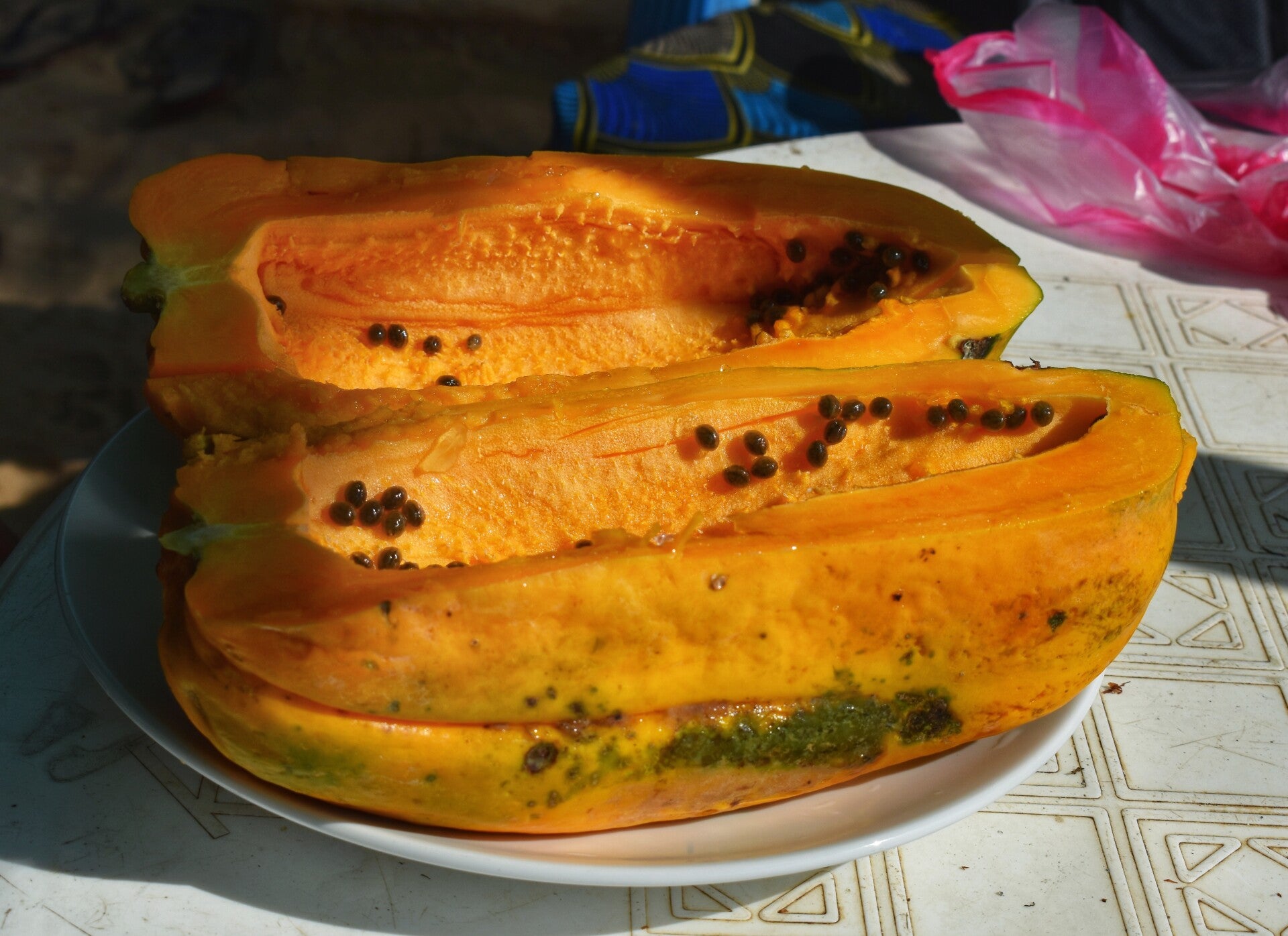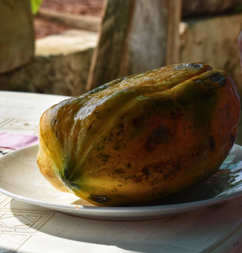 Gestern Abenoch brachte John noch eine riesige Papaya als Geschenk, perfekt für den heutigen Ausflug zum Beach No. 2.
