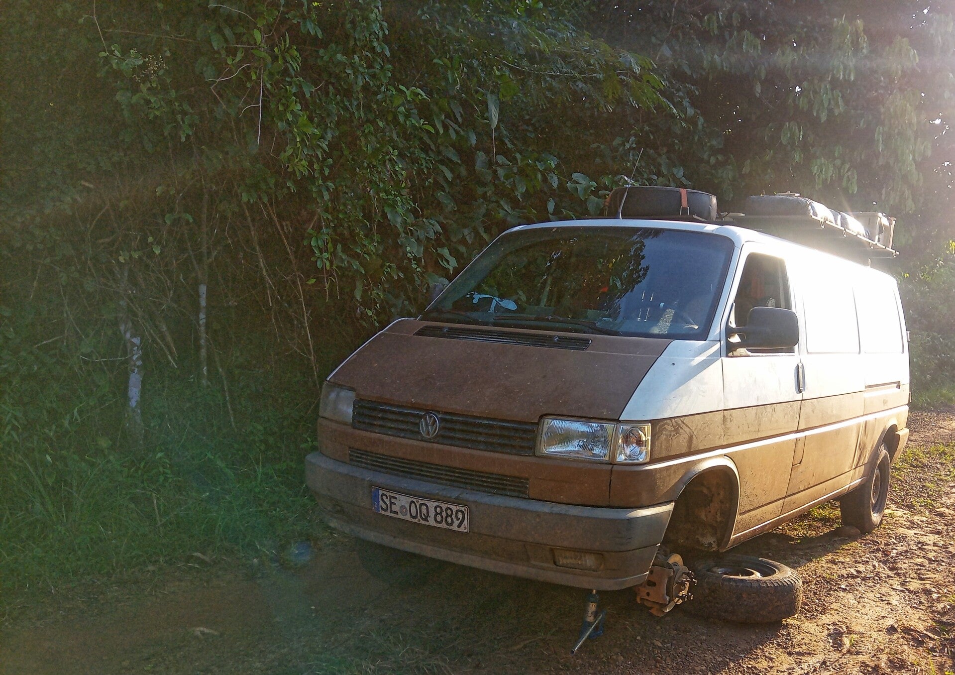 Um 21 Uhr kam der Mechaniker und benutzte diesmal meine Unterlegplatten.