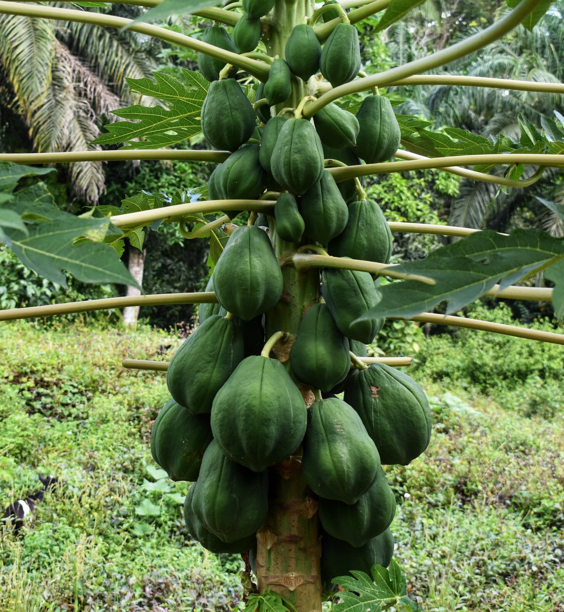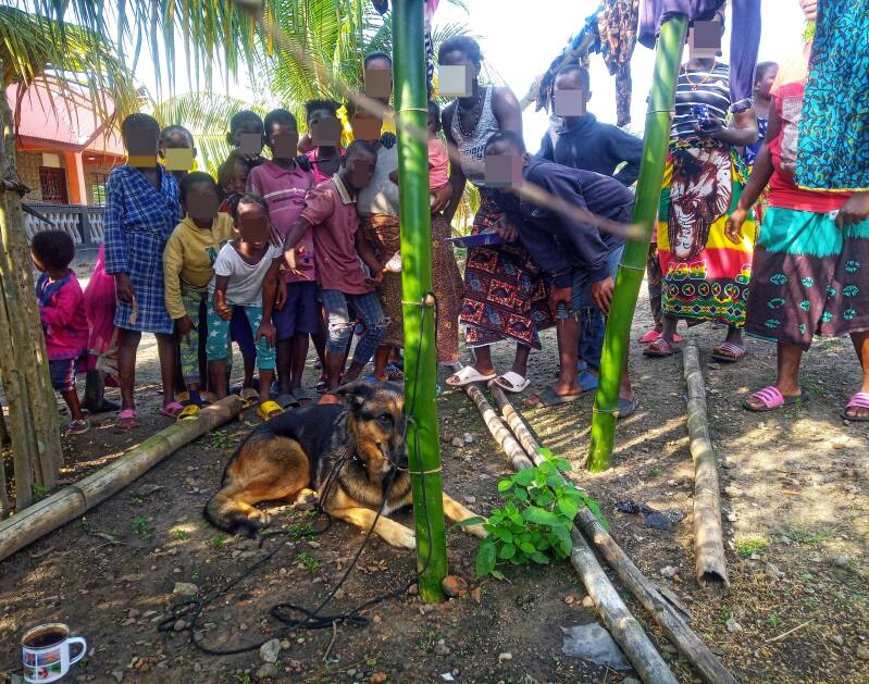 Die Guides hatten auch immer weniger Angst vor ihr. Als sie ihr Yams gaben (nach Reis das zweitwichtigste Nahrungsmittel hier) und Mitzi voll drauf abfuhr waren sie ganz aus dem Häuschen. Sie kann sehr süß sein wenn sie im Bettelmodus ist, musste die Guides davon abehalten ihr zuviel zu geben.