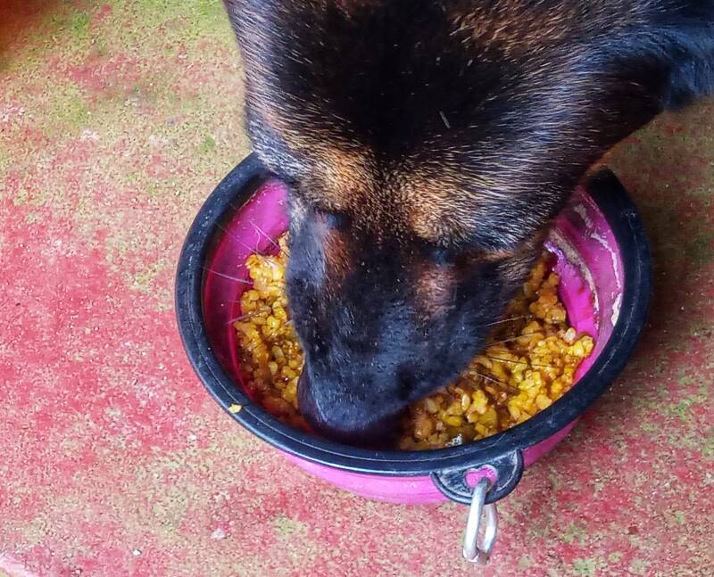 Muss aufpassen dass die Guides Mitzi nicht überfüttern. Eigentlich hatte sie schon Frühstück, Reis bekommt sie bei mir aber auch ab und zu.