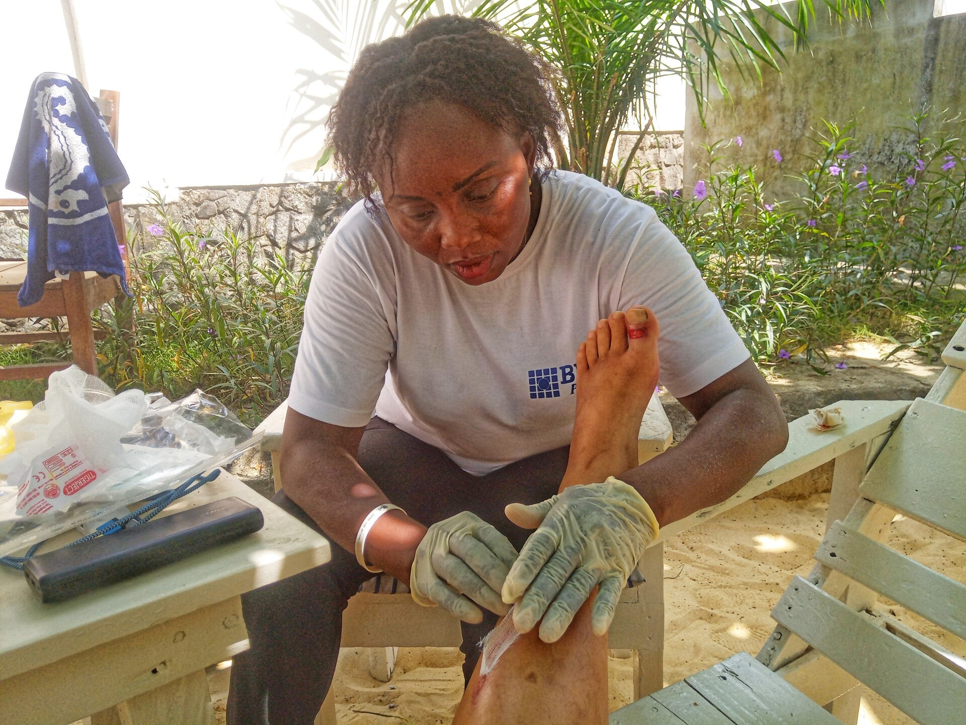 Am Vormittag kommt Anita mit dem Motorradtaxi um die Wunden zu versorgen.