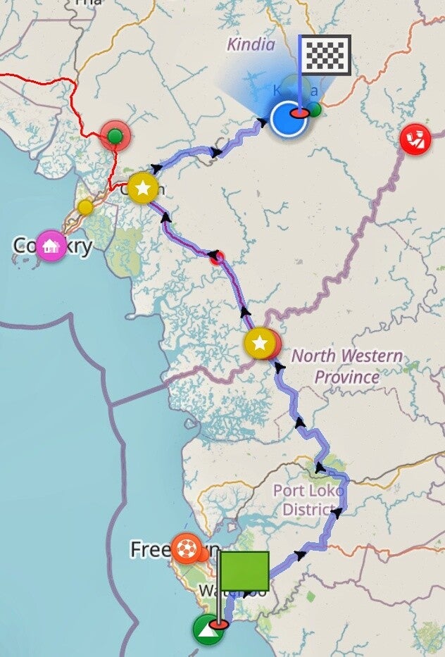 Aufgrund der aktuellen Situation habe ich mit schlimmeren gerechnet. Nicht mehr Kontrollen als sonst, die üblichen Fragen nach Geld für Wasser mittlerweile routiniert abgewimmelt. Eine Flasche Wasser angeboten, wurde dankend abgelehnt. Spätestens wenn Mitzi ihre Schnauze rausgestreckt hat war die Kontrolle zu Ende. Gehört hab ich einen Sampler den Tamba zusammengestellt hat. Hier ist der Sommerhit in Sierra Leone.