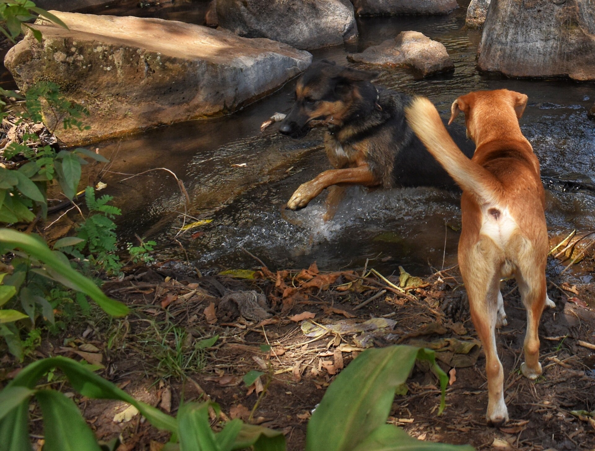 Mitzi hat schnell Freundschaft geschlossen mit 2 Hunden die hier leben. Die sind die ganze Zeit beim Auto gelegen und haben uns bei allen Spaziergängen begleitet.