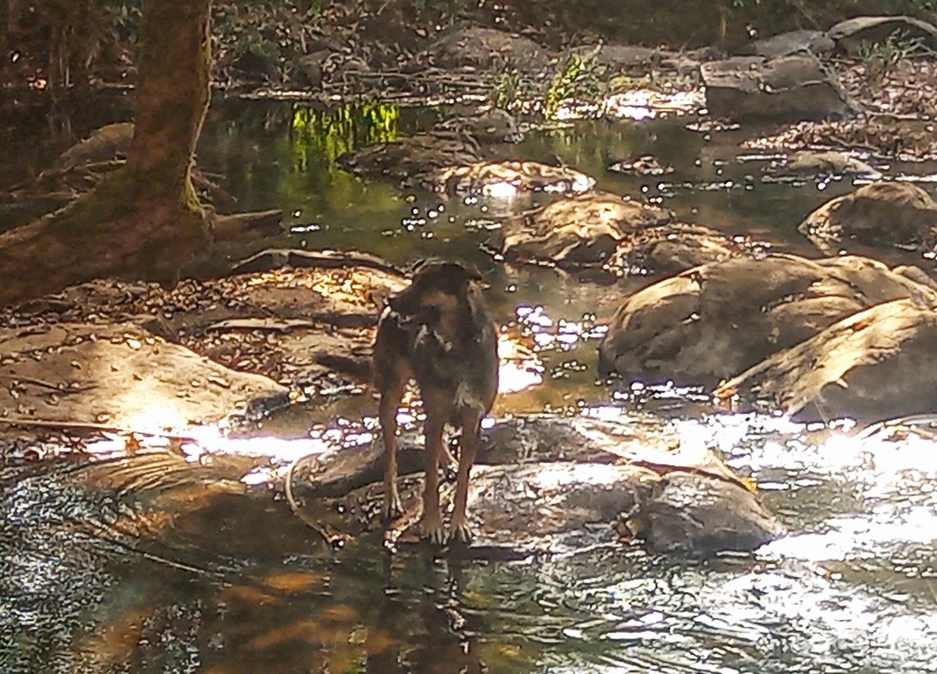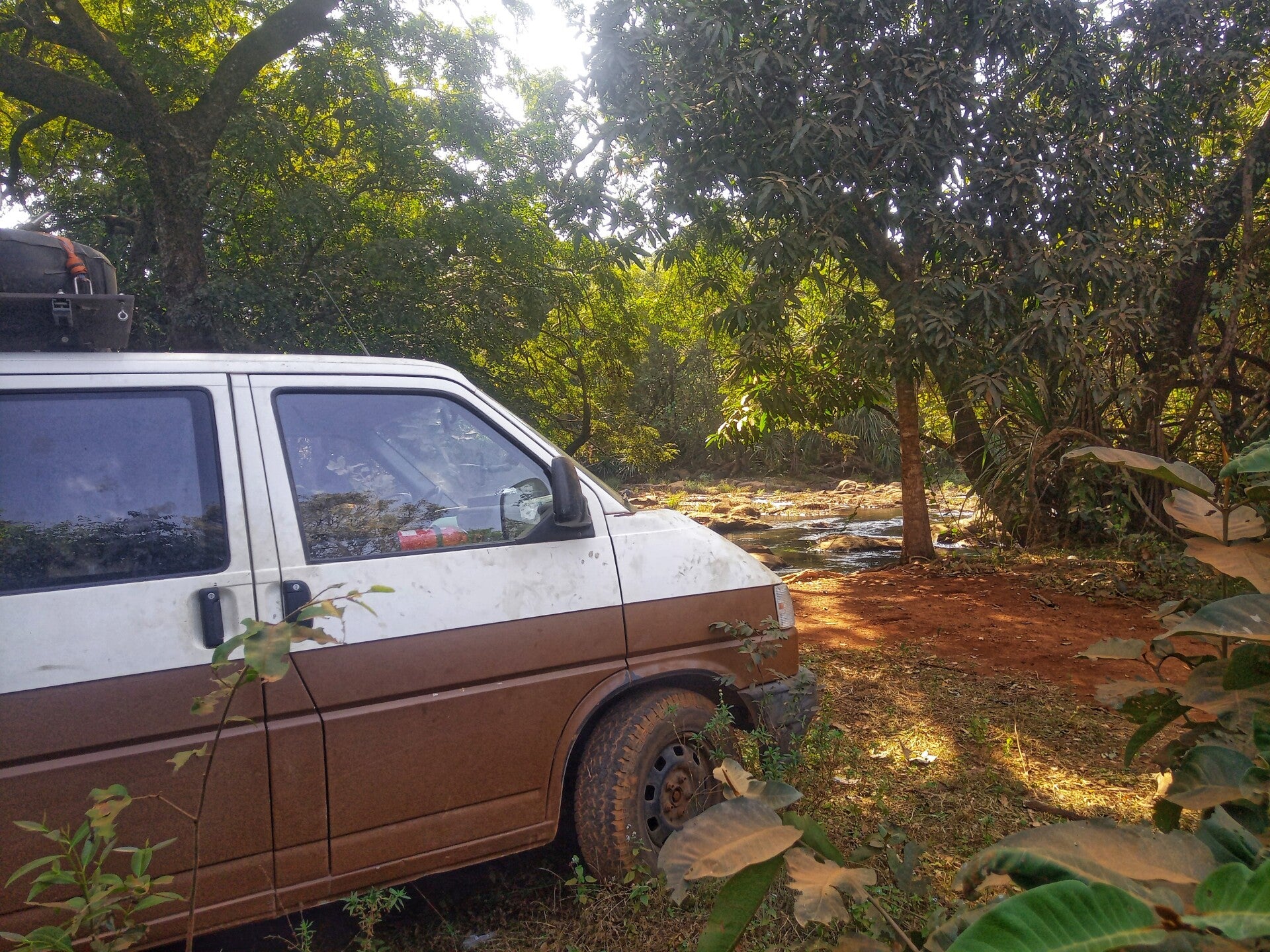 Tat gut nach der ganzen Pedalarbeit (bremsen, kuppeln, Gas geben) die Füße ins kalte Wasser zu stellen. Waren früh genug da damit Mitzi nach der holprigen und staubigen Fahrt noch einen Schwumm machen konnte.