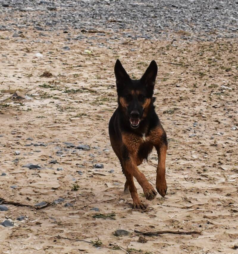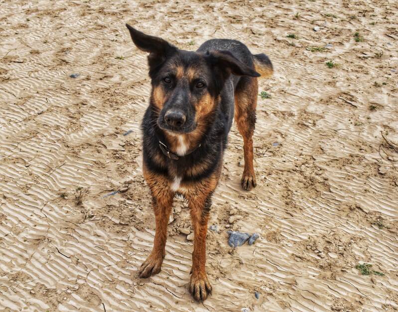 Wie man sieht stört Mitzi der zusätzliche Tag hier nicht, die fühlt sich ziemlich wohl hier wie man sieht. Dieses mal sind wir früher dran und es ist okay wenn sie ins Wasser geht. Mir wärs zu kalt. Aber sie sieht glücklich aus.