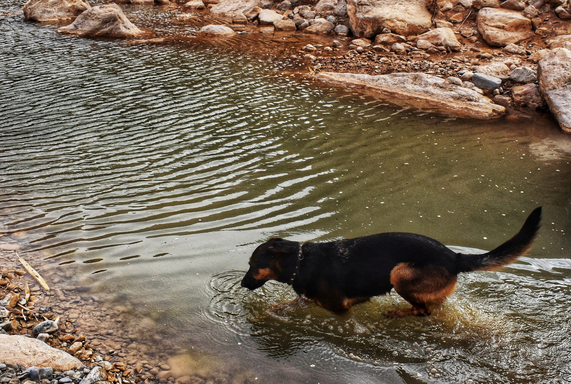 beginnt perfekt weil ich sie sofort ableinen kann. Muss wohl ein richtiger Fluss gewesen sein, oder ist es immer noch. Keine Ahnung ob's eine Jahreszeit gibt wo er richtig Wasser führt.